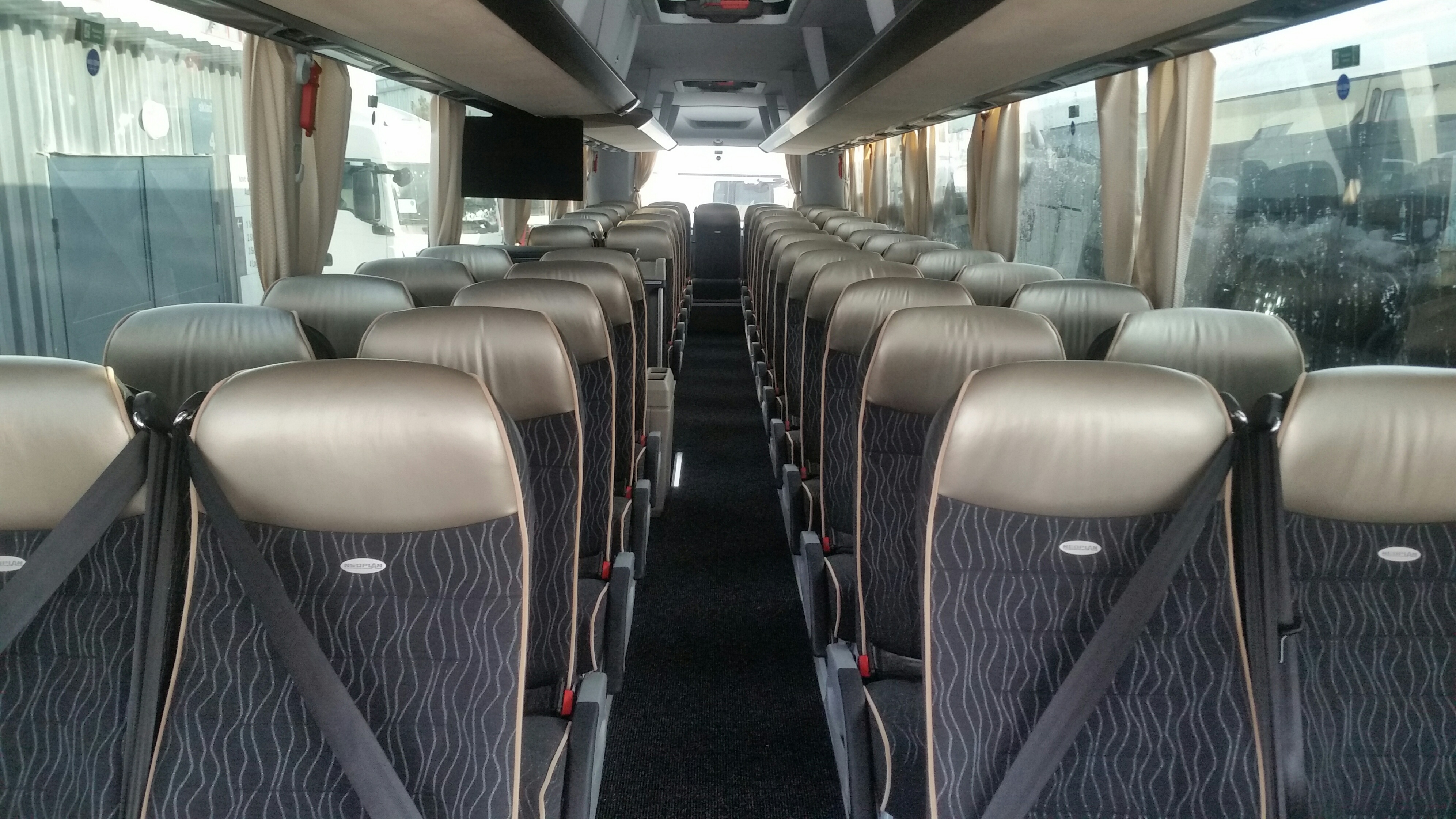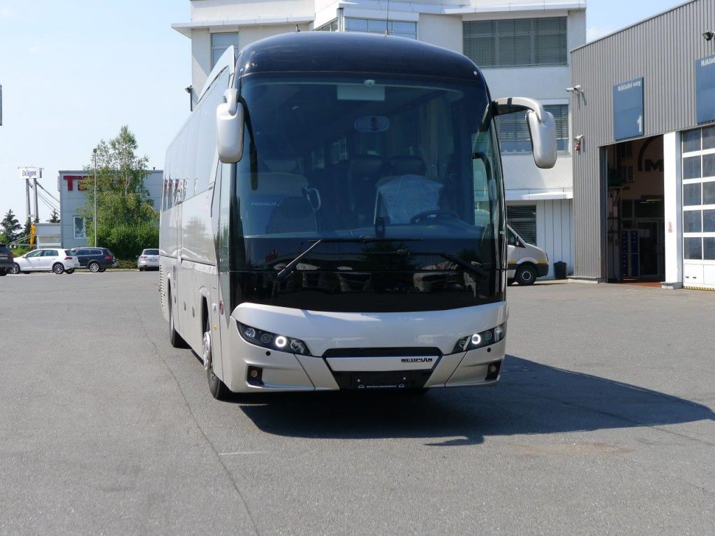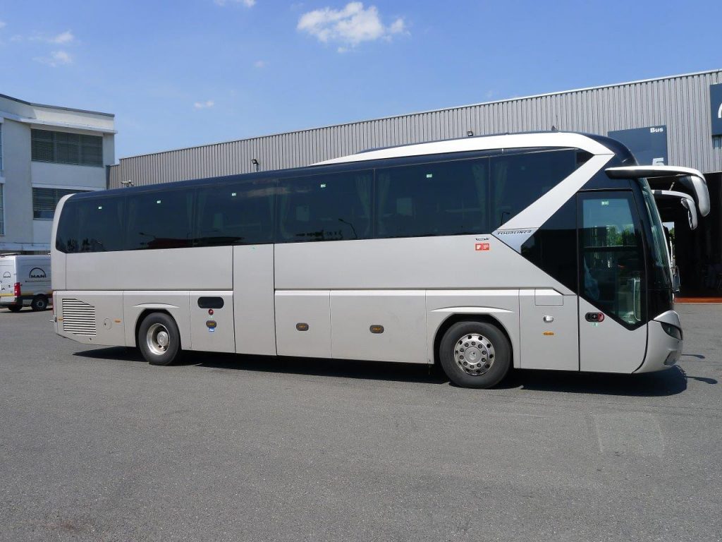 Luxusný 49 miestny moderný autobus značky NEOPLAN hnedej farby s pohodlnými polohovateľnými sedadlami. Ako privítanie od nás dostanete welcome drink v autobuse v podobe praktickej fľaškovej minerálnej vody zadarmo.