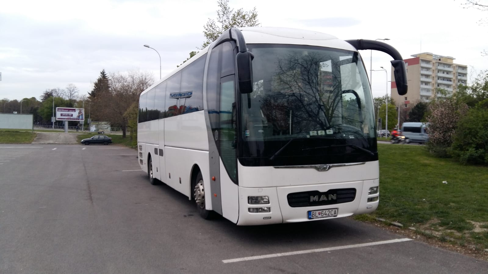 Záajazdový 49 miestny autobus značky MAN elegantnej bielej farby s pohodlnými polohovateľnými sedadlami. Ako privítanie od nás dostanete welcome drink v autobuse v podobe praktickej fľaškovej minerálnej vody zadarmo.