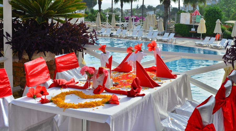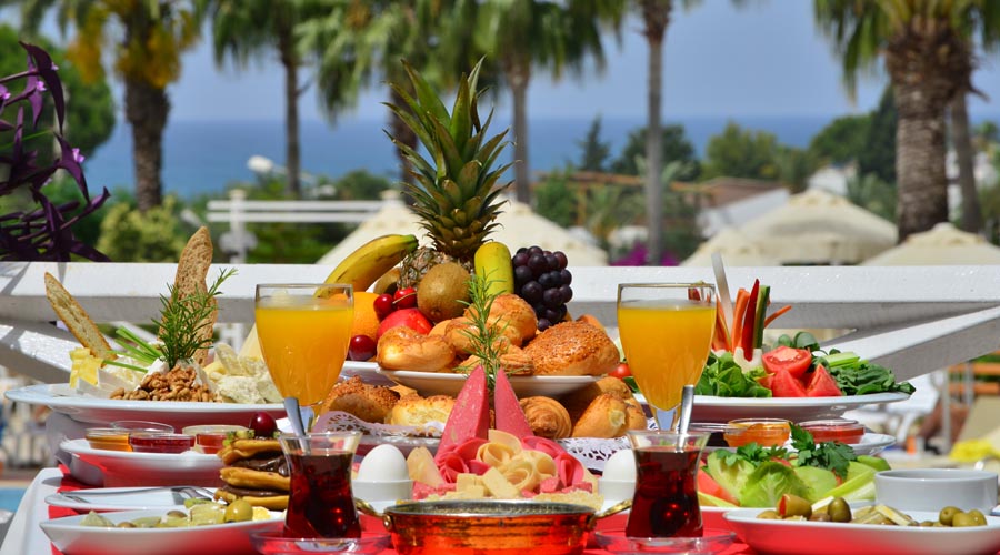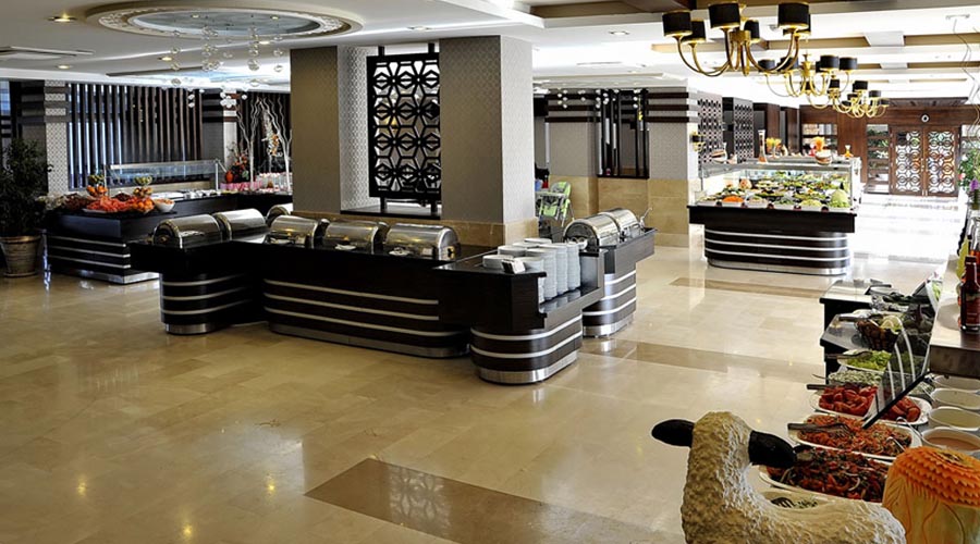 Program all inclusive zahŕňa: miestne alkoholické a nealkoholické nápoje v čase 10:00 h-00:00 h. Uvedený časový interval all inclusive a otváracia doba barov môžu byť hotelom pozmenené. Raňajky, obed a večera formou bufetu sú podávané v reštaurácií (prípadne podľa rozpisu) v nasledujúcich časoch: 07:00-10:00 raňajky, 11:00-16:00 Gözleme, 12:30-14:00 obed (bufet), 12:30-14:00 snack na pláži, 12:30-15:00 snack, 15:00-16:00 káva a sušienky, 15:00-16:00 zmrzlina, 19:00-21:00 večere (bufet), 23:00-23:30 nočné občerstvenie (mini bufet), 19:00-21:00 A’la carte reštaurácia (turecká, talianská), 10:00-17:00 snack bar, 10:00-17:00 Bar na pláži, 10:00-00:00 Lobby bar, 10:00-00:00 Bar pri bazéne, 00:00-02:00 Disco bar.