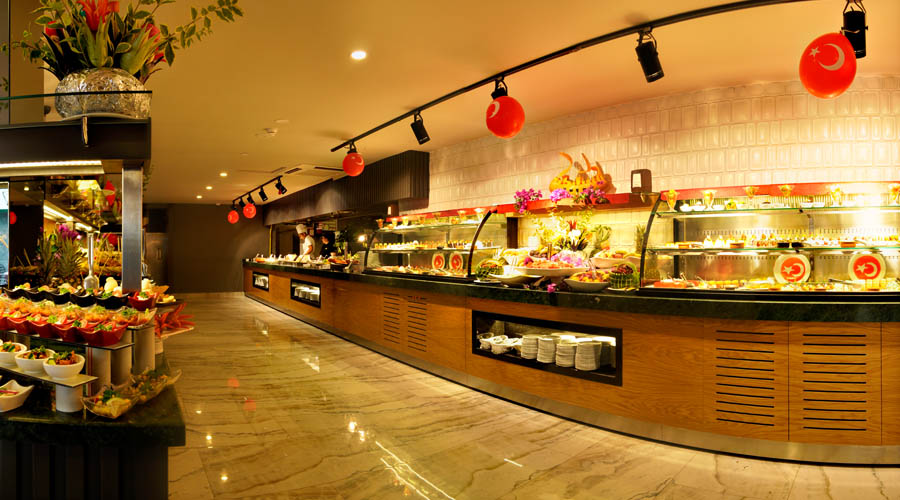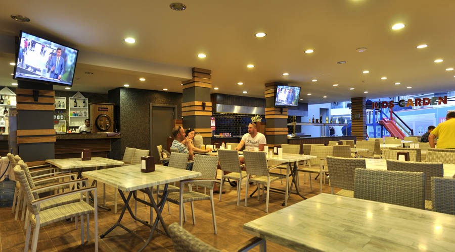 Program all inclusive zahŕňa: Program ultra all inclusive zahŕňa miestné alkoholické a nealkoholické nápoje 24 hodín denne. Uvedený časový interval ultra all inclusive a otváracia doba barov môžu byť hotelom pozmenené. Raňajky, obed a večera formou bufetu sú podávané v reštaurácií (prípadne podľa rozpisu) v nasledujúcich časoch: 07:00-09:30 raňajky (bufet - hlavná reštaurácia), 09:30-10:00 Neskoršie raňajky (mini bufet - hlavná reštaurácia), 10:00-18:00 ťaj a sušienky (cukráreň), 11:00-18:00 desiata (bar na pláži), 11:00-18:00 Gözleme (bar na pláži), 11:00-18:00 desiata (snack reštaurácie), 12:30-14:00 obed (bufet – hlavná reštaurácia), 15:00-16:00 zmrzlina (snack reštaurácie 2 x týždenne), 19:00-21:00 Večera (bufet - hlavná reštaurácia), 23:30-00:30 Nočné občerstvenie (mini bufet - snack reštaurácie), 01:00-06:00 nočný snack (mini bufet - snack reštaurácie), 10:00-18:00 Bar na pláži (nealkoholické nápoje, pivo a víno v cene), 10:00-23:00 Lobby bar. Snack bar v prevádzke 24 hodín denne.