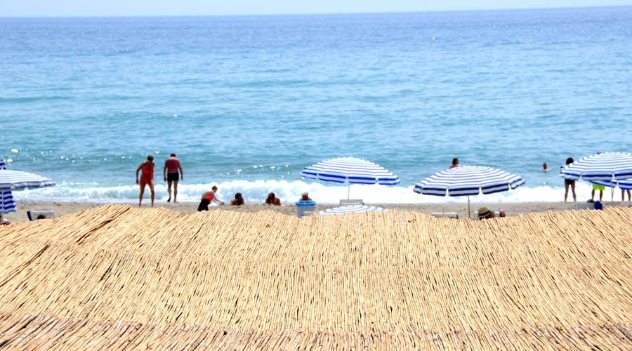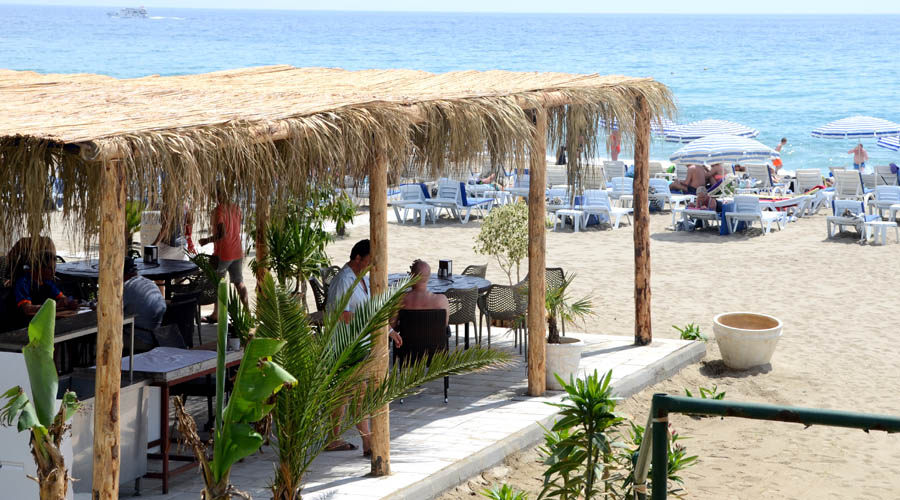 Krásná kamienkovo-piesočnatá pláž vzdialená 150 m od hotela je prístupná cez podchod pod podzemnou komunikáciou. Na pláži sú k dispozícií lehátka, slnečníky, matrace, uteráky a nápoje.