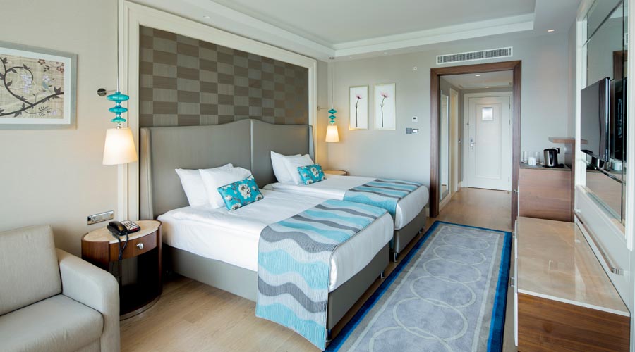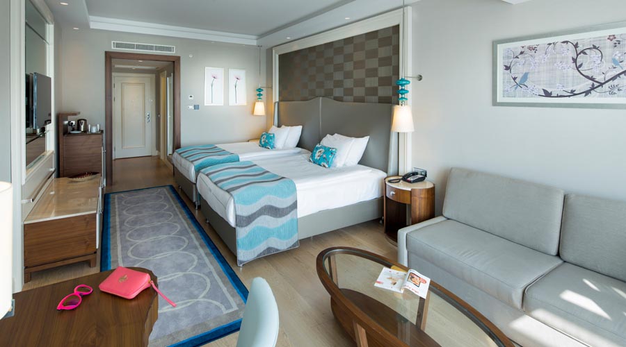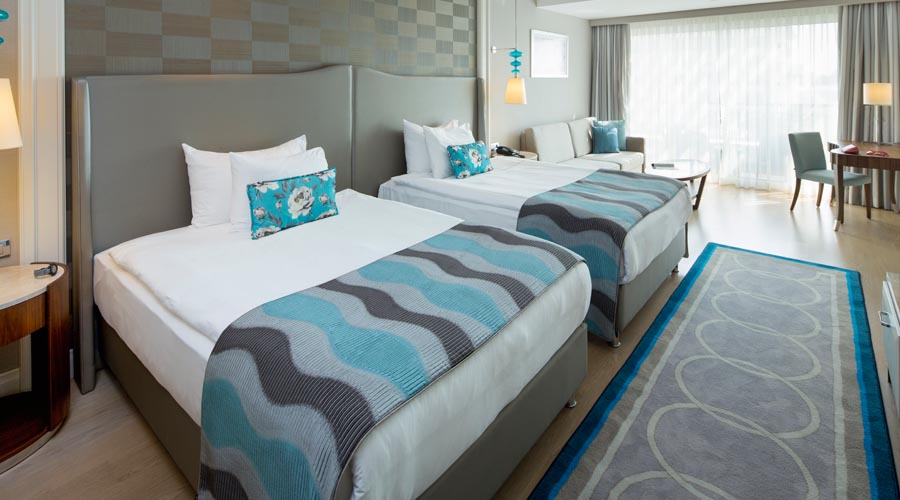 2-posteľové (manželská posteľ alebo 2 jednolôžkové postele) izby s možnosťou 2 prísteliek (pevné lôžko alebo rozkladacie kreslo), kúpeľňa so sprchou, centrálna klimatizácia, konvica, WC, fén, TV-SAT, minibar, telefón, trezor, balkón. Upratovanie izieb se vykonáva denne, uteráky a posteľná bielizeň sa mení každý deň.