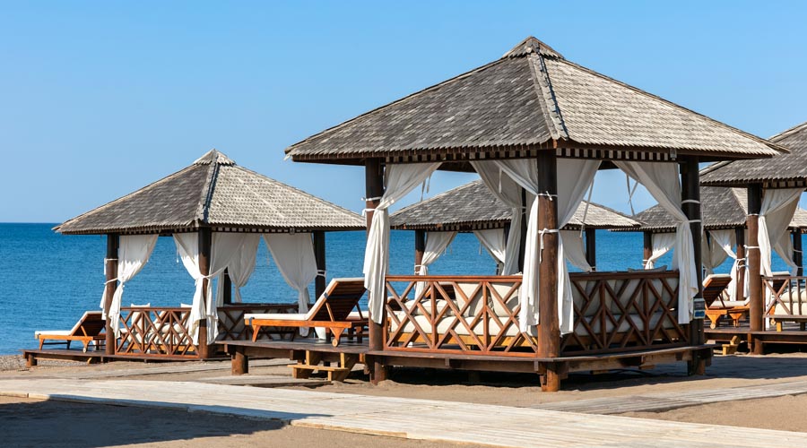 • lehátka, slnečníky, uteráky na pláži aj pri bazéne