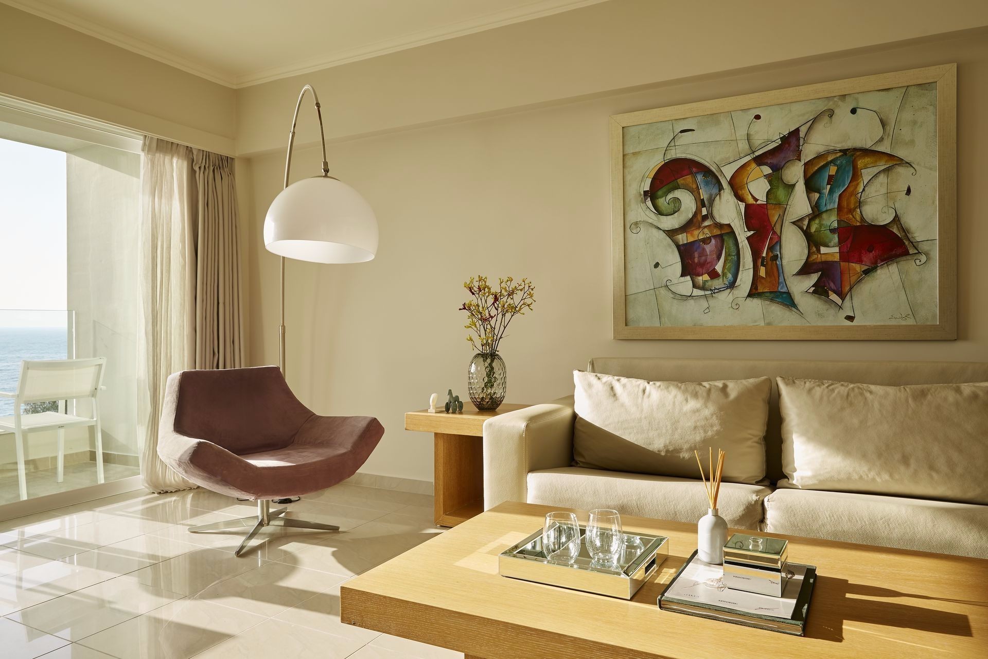Dvojizbové ubytovanie SUPERIOR s výhľadom na more: možnosť obsadenia 2 – 3 osoby. Tam kde sa stretáva krása prírody so štýlom, luxusom a pohodlím nájdete toto novo zrekonštruované ubytovanie s výhľadom na magické Iónske more. Ubytovanie s paletou zemitých farieb vytvára pozitívnu atmosféru. Priestranná spálňa s dvoma samostatnými posteľami, alebo manželskou posteľou, kúpeľňa s vaňou alebo sprchovacím kútom a pohodlná samostatná obývacia izba poskytuje komplexný pobyt, ktorý nemá obdoby.