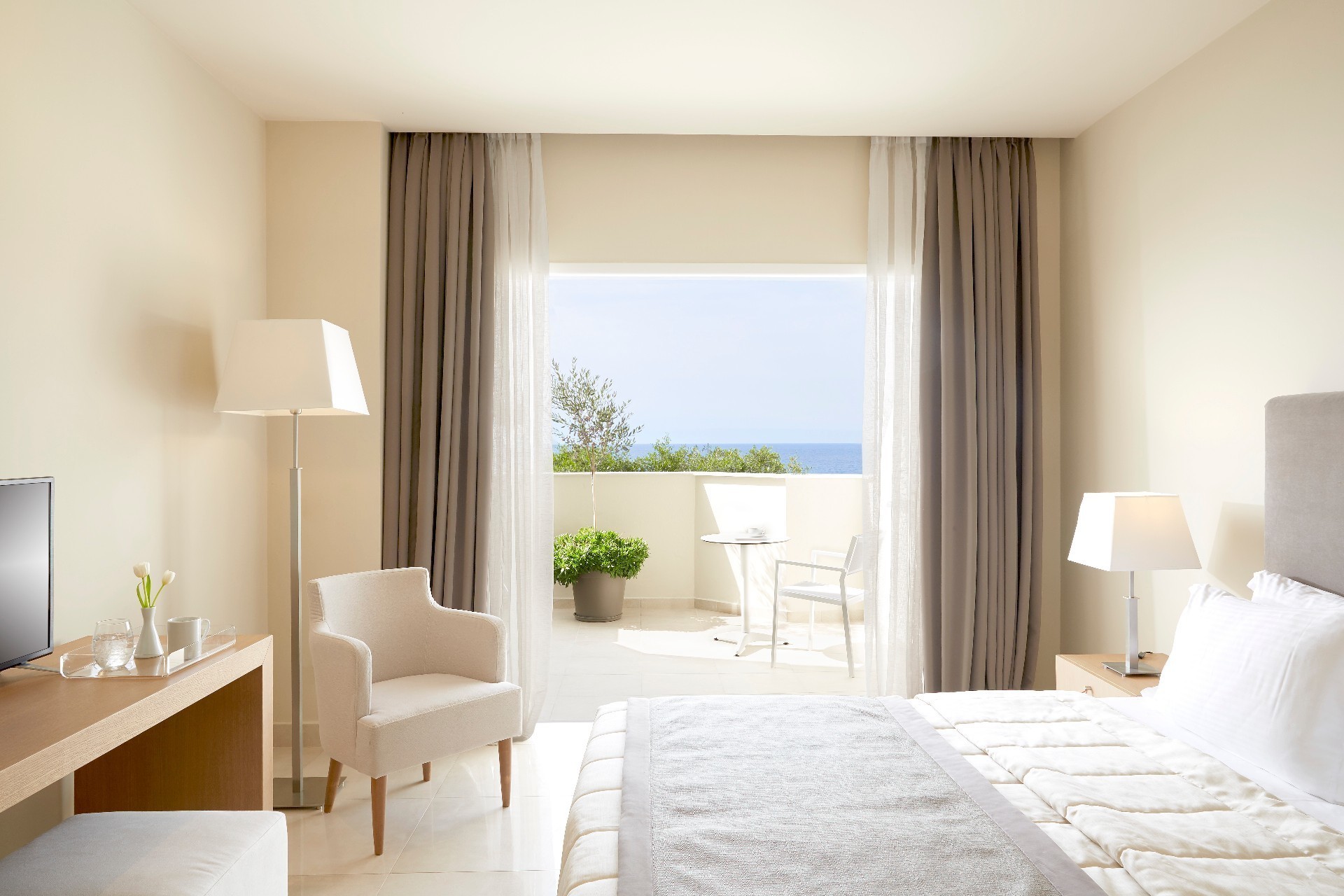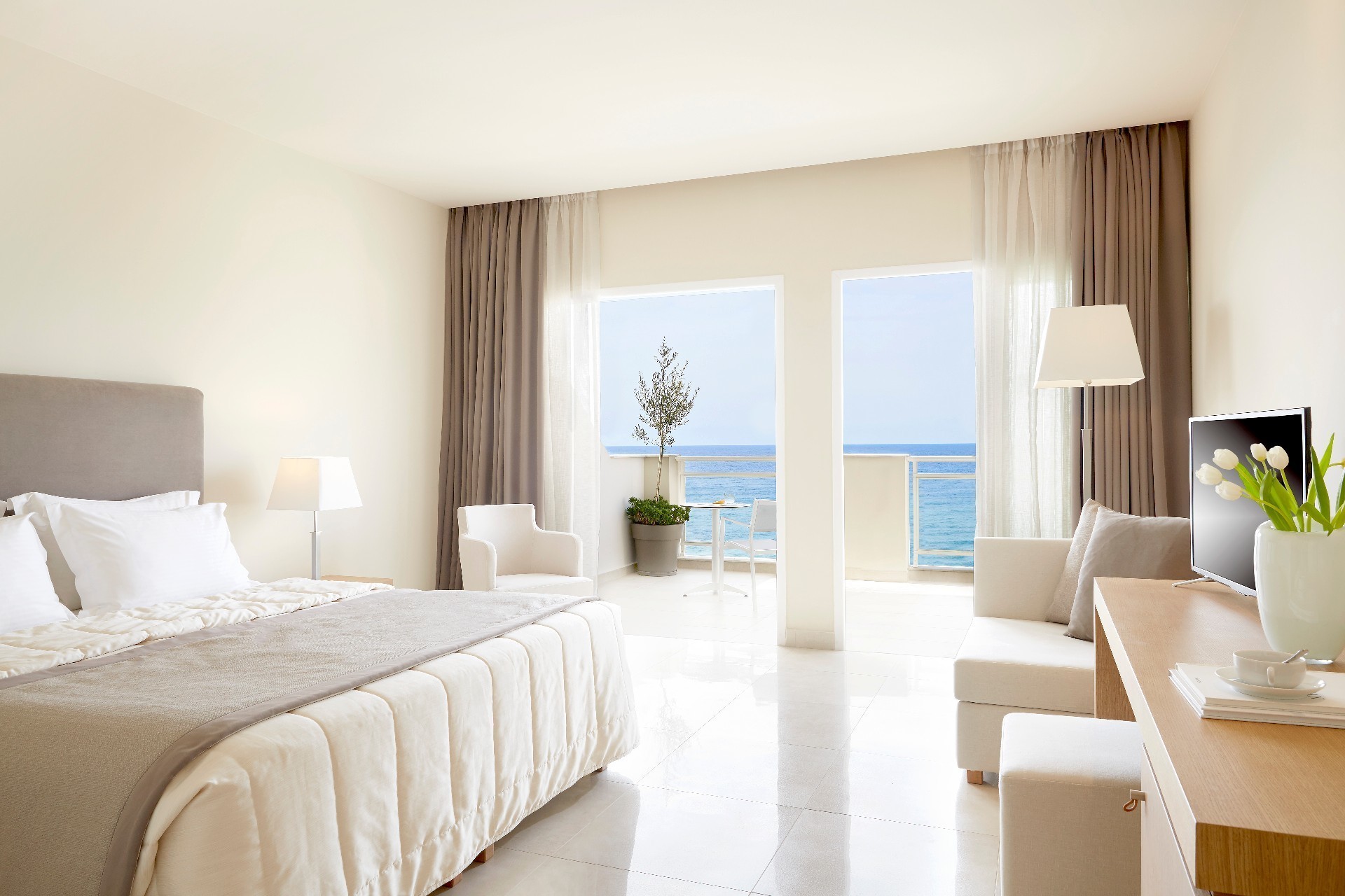 JUNIOR SUITE s výhľadom na more: možnosť obsadenia 2 osoby plus 2 deti, alebo 3 osoby plus 1 dieťa. Ubytovanie je priestranné, pohodlné, dobre osvetlené. Dve jednolôžkové postele, alebo manželská posteľ, kúpeľňa s vaňou, alebo sprchovacím kútom, malá zariadená veranda s výhľadom na Iónske more. Na rozkladacej pohovke sa môžu ubytovať ďalší dvaja hostia.