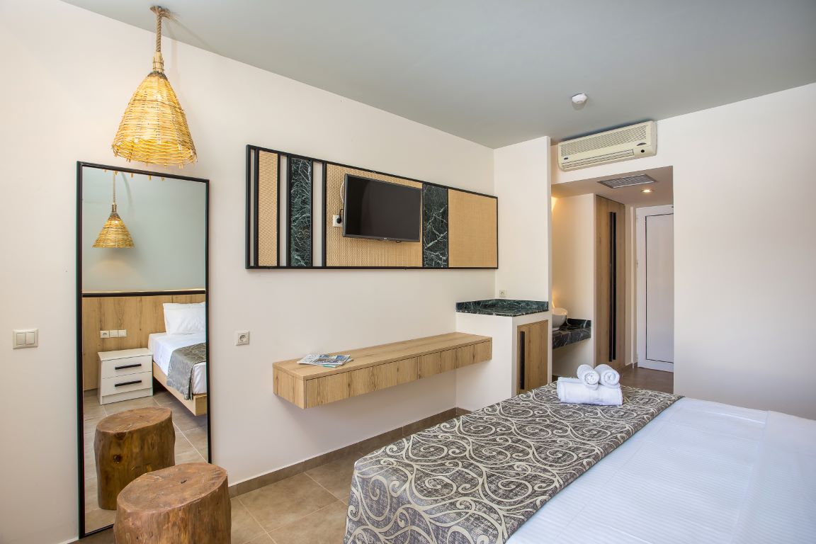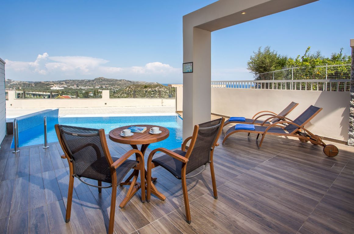 Vybavenie a poskytované služby: Kúpeľňa so sprchou, skriňa, káva, denné upratovanie (okrem nedele), telefón s priamou voľbou, plochý televízor, fén, individuálne ovládaná klimatizácia, rýchlovarná kanvica, obývačka, k dispozícii sú nefajčiarske izby, uteráky k bazénu, súkromný bazén, súkromná terasa, chladnička, trezor, bočný výhľad na more, miesto na sedenie, zvukotesné okná, Wi-Fi pripojenie na internet (zadarmo)