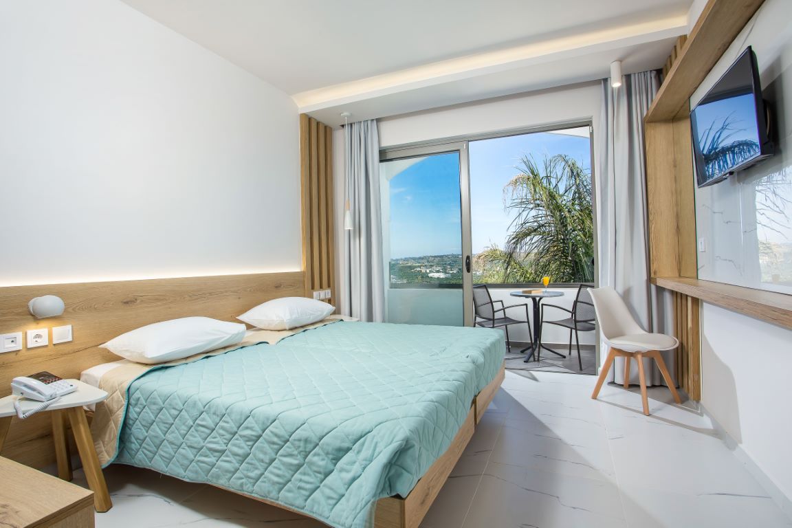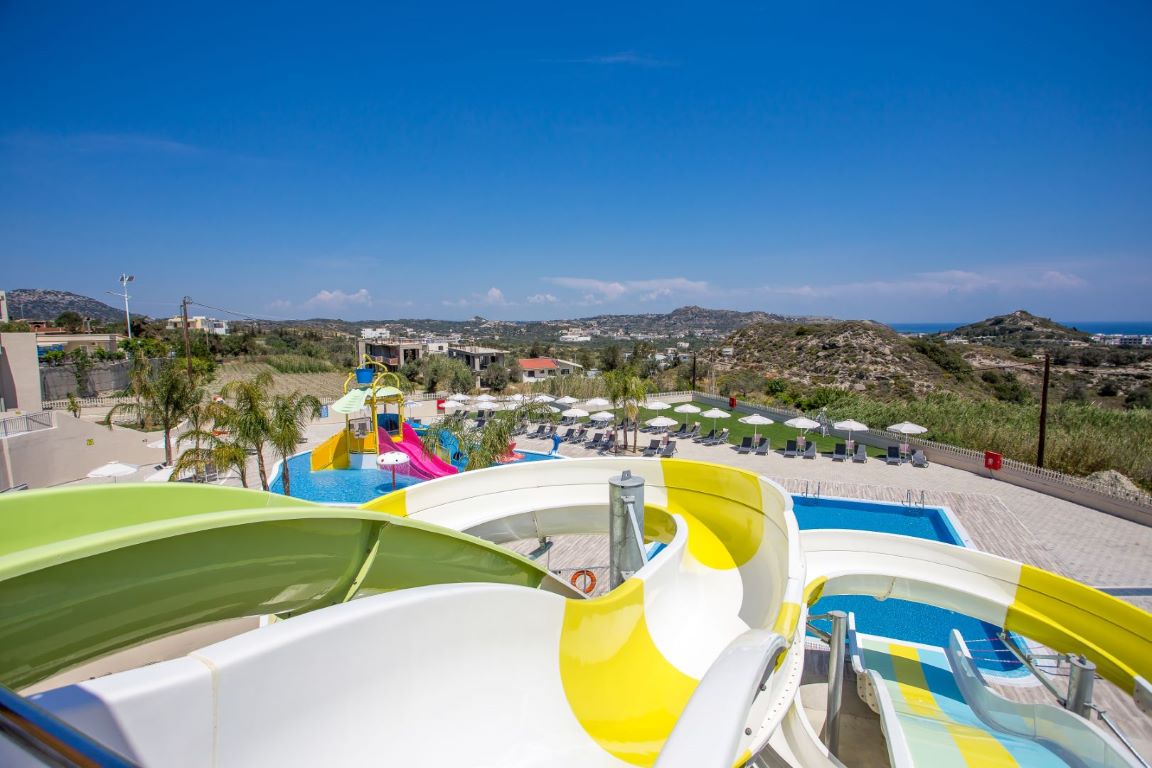 Autobusová zastávka pred hotelom, 1,5 km od centra Faliraki a 2 km od pláže. 16 km od mesta Rhodos a prístavu (čas transferu z prístavu alebo letiska 25 minút),16 km od letiska, 6 km od golfu, 4 km od vodného parku Faliraki a 35 km od Lindosu.
