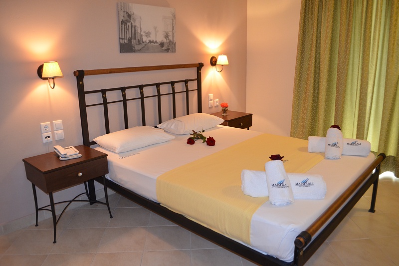 Apartmány Deluxe v hoteli Maistrali na Zakynthose sú dokonalým riešením pre rodinu alebo štvorčlennú skupinu, najmä ak je potrebný vyšší stupeň súkromia. Tieto dvojizbové apartmány majú kuchynku mimo hlavnej spálne a atraktívnu kúpeľňu so sprchovacím kútom. Výhodou apartmánov na veľkorysej ploche 35 metrov štvorcových sú spojovacie dvere, ktoré je možné zavrieť, keď chcú dvaja priatelia alebo manželia viac súkromia, alebo ak malé deti potrebujú skôr spať.