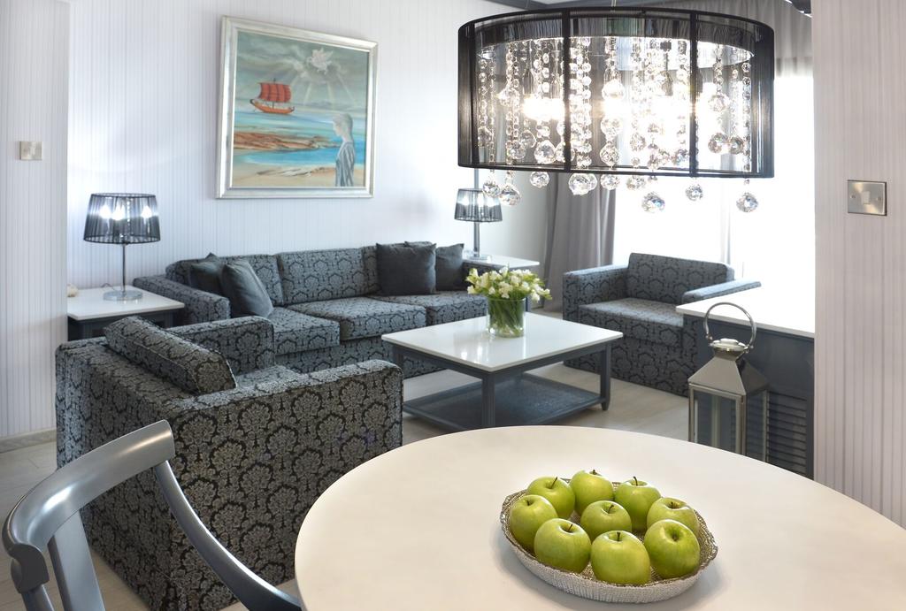 Každá suita má čiastočne oddelený salónik s TV, pohovkou a jedálenským kútom. Je jedinečne zariadená a ponúka nerušený výhľad na Stredozemné more, Spálňu aj spoločenskú miestnosť. Nachádza sa tu balkón s vonkajšou vírivkou. Uvítacie vybavenie vrátane ovocia, kvetov a šampanského.