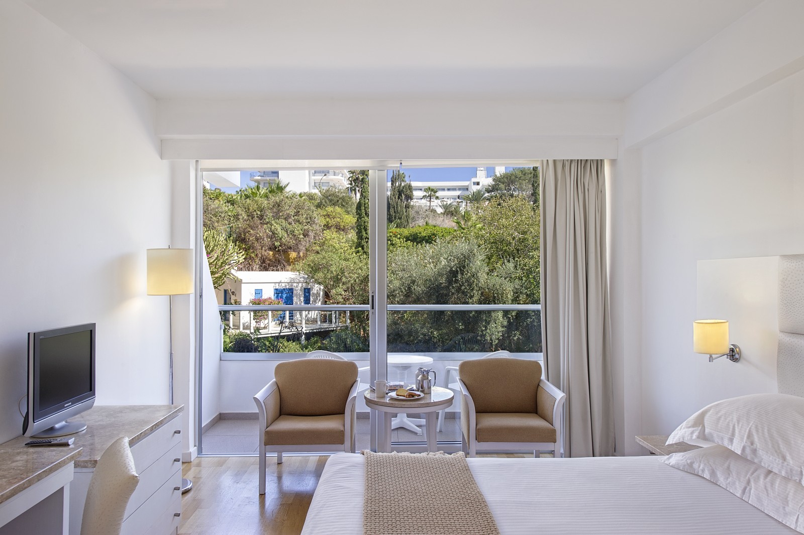 Oddýchnite si v jednej z našich príjemných izieb alebo apartmánov, užívajte si súkromné balkóny alebo terasy, ktoré ponúkajú úžasný výhľad na naše krásne upravené záhrady, bazén alebo Stredozemné more.