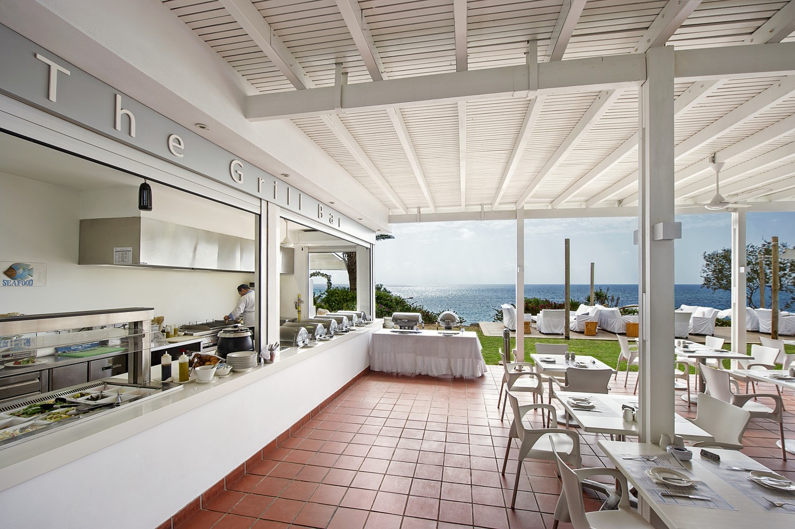 Večerajte v Grill bare. Nachádza sa medzi zlatistou piesočnatou plážou a bazénom. Ponúka vynikajúci výber občerstvenia po celý deň, ako aj la carte alebo obed formou bufetu s miestnymi a medzinárodnými špecialitami, vrátane chutných sendvičov, čerstvých šalátov, grilovaného mäsa a pokrmov z morských plodov.