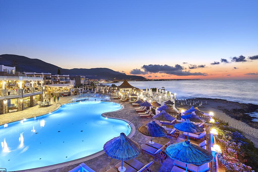 Všetky izby a suity sa nachádzajú uprostred záhrad s rozkvitnutými kvetmi a rastlinami, v blízkosti bazénov alebo piesočnatej pláže. Sú elegantné a vkusne zariadené a kombinujú zmysel pre krétsky štýl s moderným komfortom.
