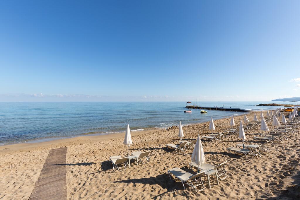 Krásna piesočnatá pláž s kamenistými útesmi, pozvoľným vstupom do mora, krištáľovo čistou vodou a širokou ponukou motorizovaných a nemotorizovaných vodných športov (za poplatok - loďky, vodné bicykle, windsurfing, vodné lyžovanie, paragliding, motorové člny, jazdy na banánoch, šnorchlovanie, potápanie) sa nachádza priamo pred hotelom. Klientom sú k dispozícii ležadlá a slnečníky (zdarma).