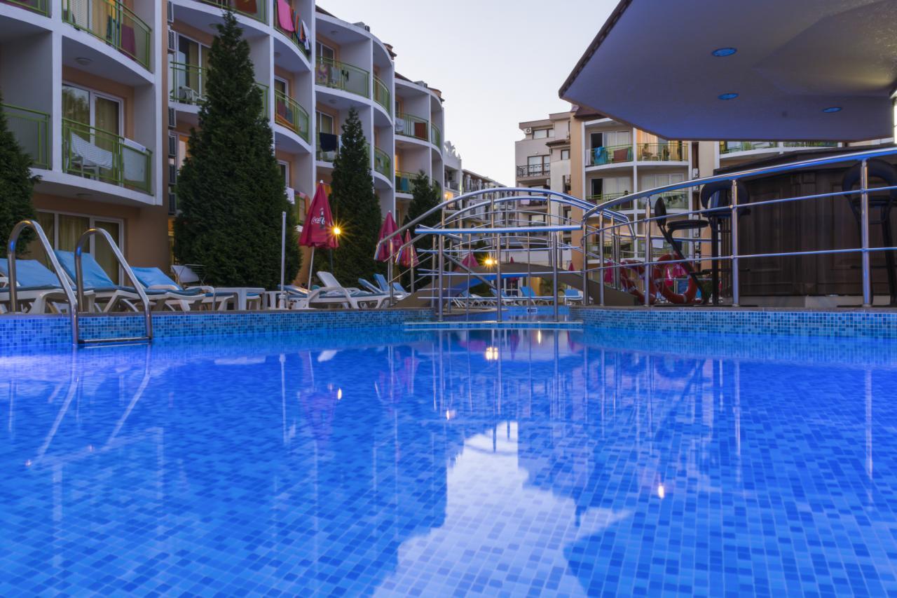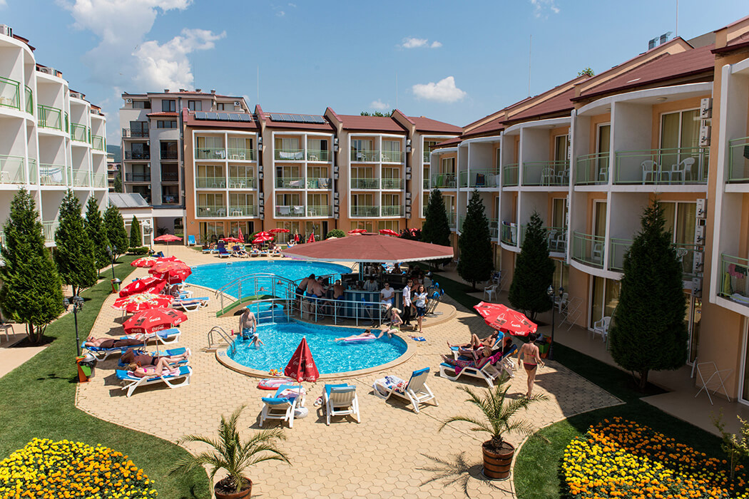 Hotel sa nachádza v tichej a pokojnej severozápadnej časti Slnečného pobrežia a je vzdialený len 10 minút od pláže a pulzujúcej hlavnej ulice rezortu.