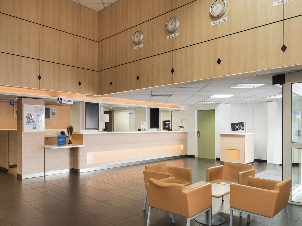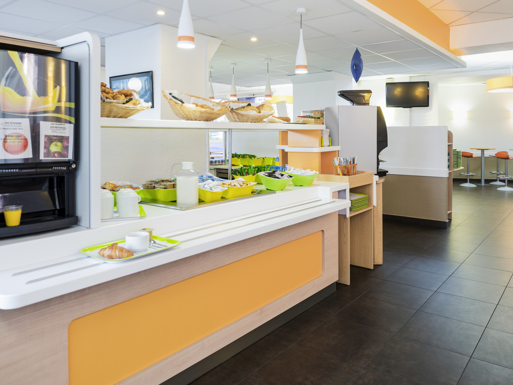 Každé ráno sa v spoločenskej miestnosti podávajú raňajky. Reštaurácia servírujúca tradičné pokrmy je od hotela ibis budget vzdialená len 500 metrov.