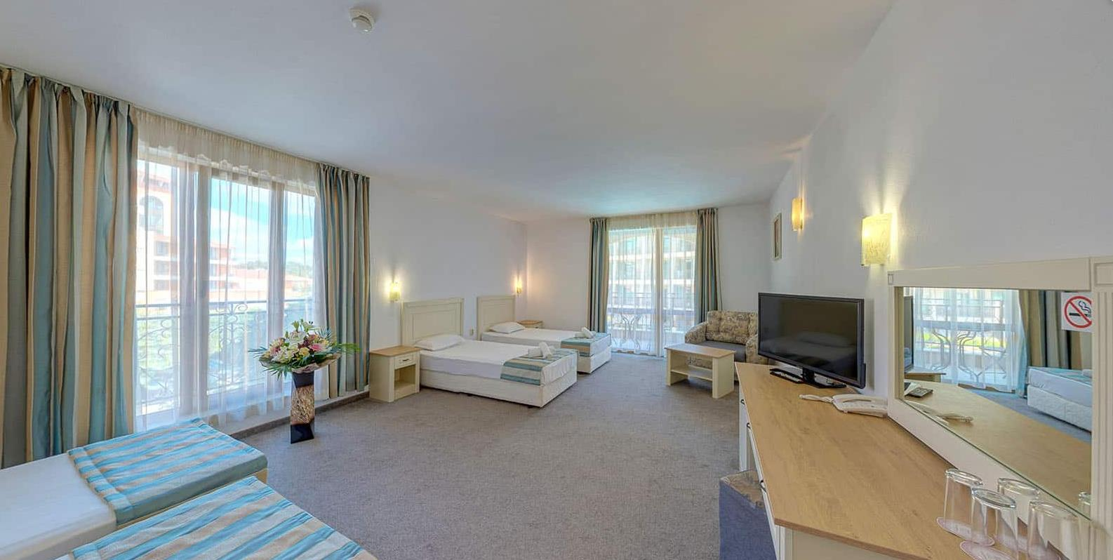 Hotel sa nachádza sa v srdci letoviska Slnečné pobrežie a len 200 metrov od piesočnatej pláže. Ponúka vynikajúce možnosti kúpania, vnútorný a vonkajší bazén, bezplatné Wi-Fi pripojenie na internet, ako aj bezplatné programy aktivít pre deti a detské ihrisko.