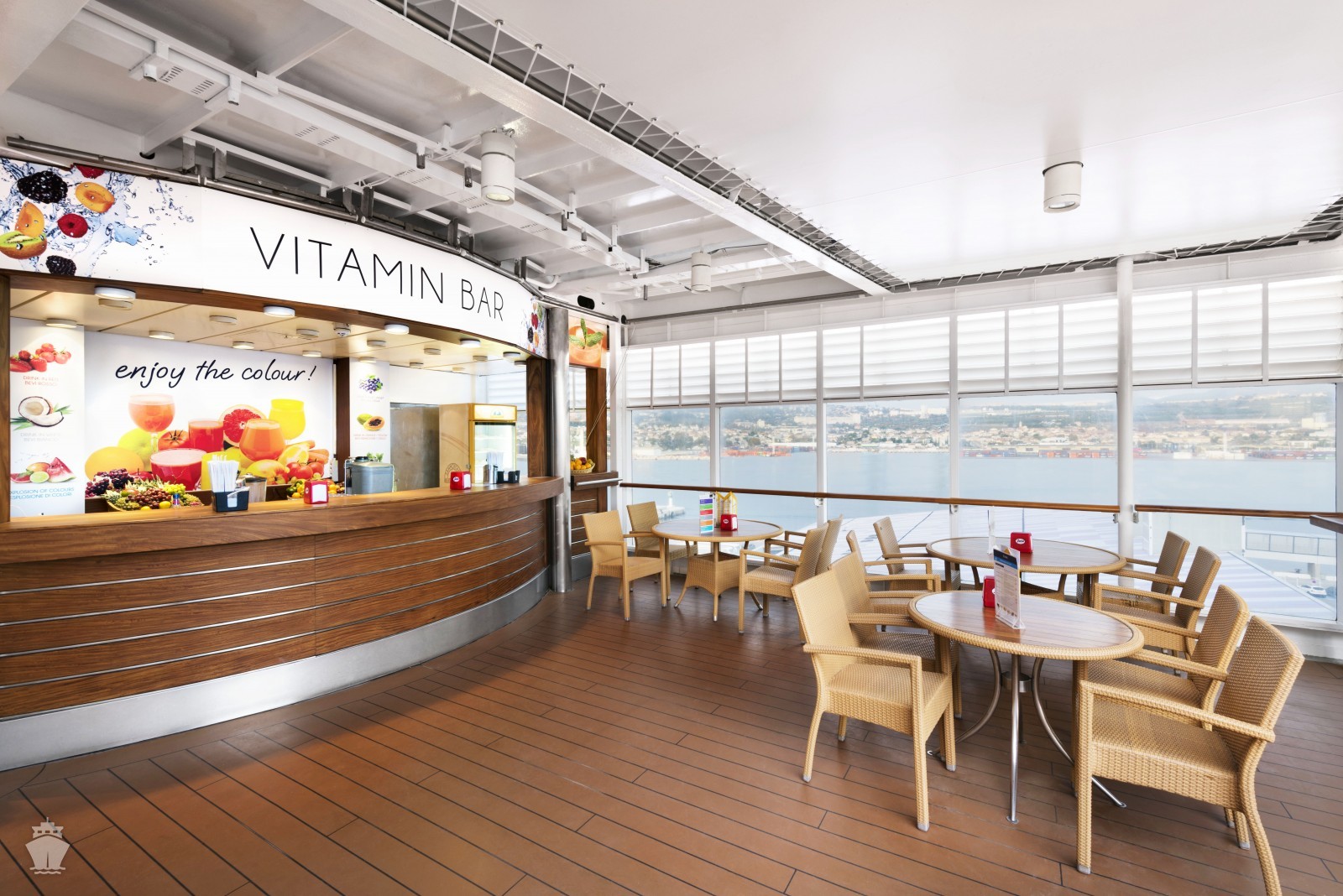 • Vitamin Bar (11. paluba): nie je v cene plavby. Čerstvé ovocné šťavy a vitamínové drinky.