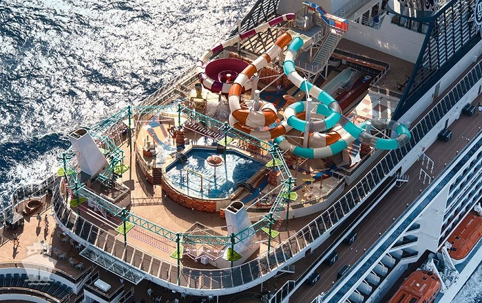 • 2 vírivky, 2 soláriá, Aquapark Savannah s vysokorýchlostným toboganom Champagne Bowl a Himalájskym mostom, ktorý sa tiahne po celej šírke paluby lode