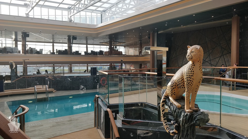 • 4 bazény vrátane 25 m bazénu Atmosphere so špeciálnym nočným osvetlením, vnútorného 10 m Bamboo a Horizon bazénu, ktorý sa v noci mení na tanečnú zónu. Vírivky.