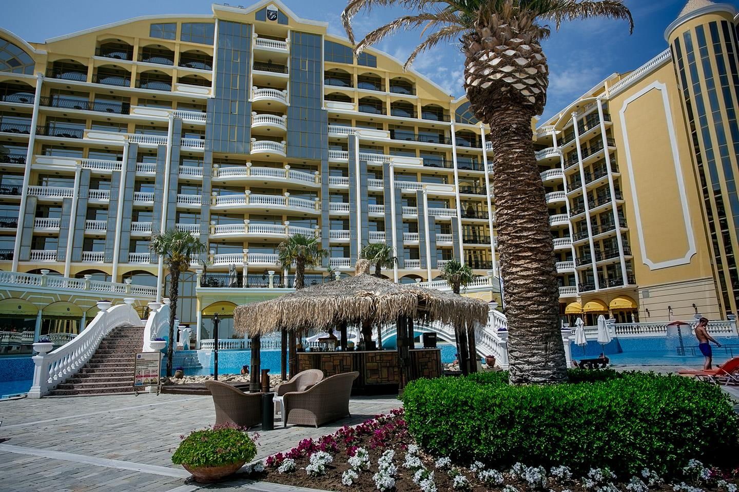 Ubytovanie: Imperial Palace 4* hotel ktorý sa vyznačuje okázalým a očarujúcim štýlom starovekej Rímskej ríše, nesúci sa v duchu nespočetných pokladov, nezabudnuteľných relikvií a veľkolepých víťazstiev Vám ponúkne nezabudnuteľné chvíle počas Vašej dovolenky. Pozostáva z komplexu hlavnej budovy a dvoch bočných krídiel, kde Vám vo svojich 550 izbách ponúka exkluzívny komfort a pokoj. Hotel Vám rovnako ponúkne neuveriteľný výhľad na záliv Slnečného pobrežia a starý Nesebar, od piesočnej pláže je vzdialený len 20m.