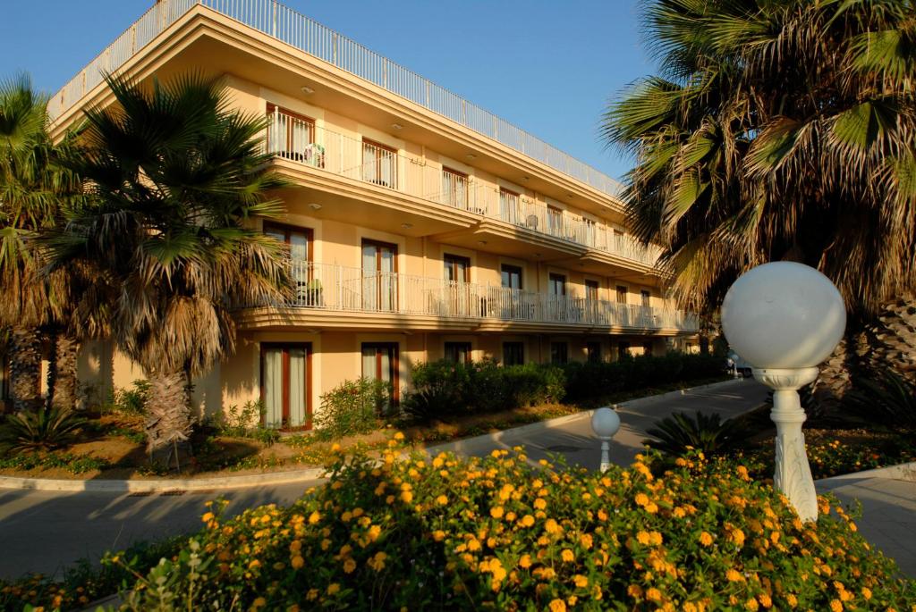 Historický hotel nachádzajúci sa v centre mestečka Letojanni na Sicílii, priamo pri pobreží, len pár krokov od pláže a s jednoduchým prístupom k reštauráciám, obchodom a zastávkam verejnej dopravy. Izby sú klimatizované a vybavené súkromnou kúpeľňou s bidetom, chladničkou, TV, denným upratovaním a niektoré majú balkón alebo výhľad na more. Nechýbajú zatemňovacie závesy, minibar, pracovný stôl a bezplatné Wi‑Fi. Hotel ponúka reštauráciu a bar, úschovňu batožiny, concierge služby, lounge priestor a recepciu s obmedzenými hodinami. Je situovaný priamo na pláži a poskytuje pokojnú atmosféru na oddych. Je čiastočne bezbariérový, disponuje výťahom. Jeho poloha na hlavnom námestí Piazza Durante v centre mesta predurčuje na návštevu kaviarní, malých obchodov, miestnych služieb a zažitia atmosféry typickej pre sicílske prímorské mestečká.