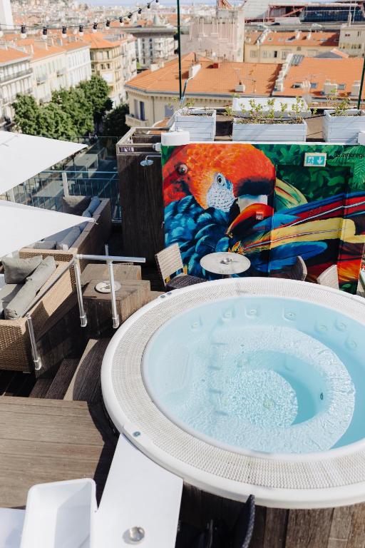 Hotel MONSIGNY sa nachádza v pešej zóne štvrte Malausséna, v srdci pulzujúceho Nice, a pýši sa mimoriadne výhodnou pozíciou. Vďaka svojej polohe sú kľúčové dopravné uzly, ako je vlaková stanica Nice-Ville, vzdialené len sedem minút chôdze, čo zaručuje ľahký prístup k objavovaniu Azúrového pobrežia. Priamo pred hotelom sa nachádza najväčší provensalský trh v Nice, ktorý hosťom ponúka autentický zážitok z miestnej kultúry a gastronómie. V tesnej blízkosti nájdete tiež množstvo nákupných centier, reštaurácií a všetkých hlavných turistických atrakcií.