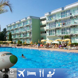 Ubytovanie: Kotva Hotel 4* sa nachádza na okraji južnej časti Slnečného pobrežia. Pozostáva z komplexu dvoch budov s veľkým areálom. Od piesočnej pláže je vzdialený len 200m a 600m od historického mestečka Nesebar, ktoré je zapísané do historického dedičstva UNESCO. Do tohto krásneho historického mestečka sa viete teda vybrať aj na prechádzku, alebo využijete služby miestneho mini vláčika. Hotel ponúka skvelé vyžitie pre deti všetkých vekových kategórií kvôli svojmu krásnemu akvaparku v štýle Pirátov z Karibiku a trom vonkajším bazénom, z ktorých jeden je plavecký a dva formou mini aqua parkov.