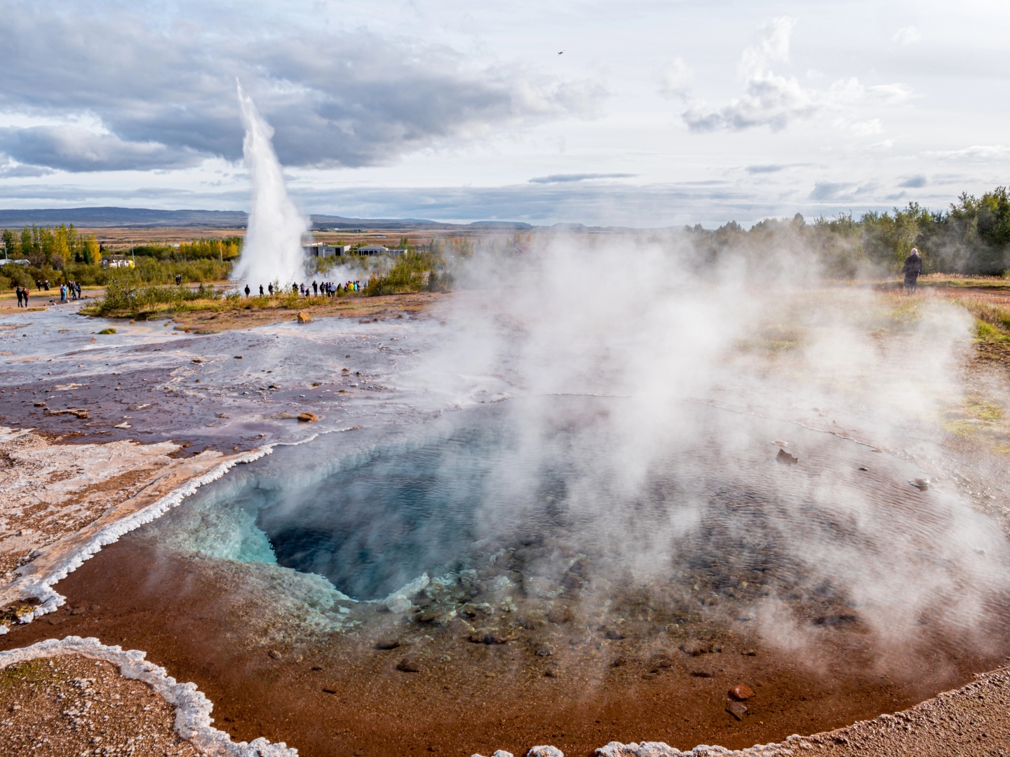 Po raňajkách sa vydáme spoznávať túto mesačnú krajinu ohňa a ľadu a vyrazíme na známy Golden Circle, najznámejší okruh na Islande, tzv. zlatý trojuholník kde za pár hodín zažijeme to naj čo Island ponúka. Uvidíme najstarší národný park Thingvellir, ktorý je miestom vzniku najstaršie fungujúceho parlamentu na svete. Zaujímavá je aj otázka či stojíme teraz v Európe alebo už v Amerike? Národný park je totiž miestom kde sa viditeľne na zlome stretávajú tektonické dosky – severoamerická a euroázijská doska a teda „prechod medzi kontinentmi“ je možný pomedzi pukliny, rokliny a údolia. Presun na farmu Efstidalur, krátka zastávka na rodinnej farme kde uvidíme pohľad na farmársky život a budete môcť ochutnať produkty ako napr. slávnu zmrzlinu. Ďalej navštívime termálnu oblasť kde sa nachádza najaktívnejší gejzír na Islande, gejzír Strokkur, ktorý vybuchuje pravidelne každých 5-10 minút. O pár kilometrov ďalej na nás bude čakať nádherný vodopád Gullfoss, najmohutnejší vodopád v Európe kde uvidíme skutočnú silu atraktívnej islandskej prírody a výhľad naň si užijeme s viacerých fotomiest v blízkosti, ak budeme mať šťastie na počasie výhľad bude doplnený o krásnu farebnú dúhu.