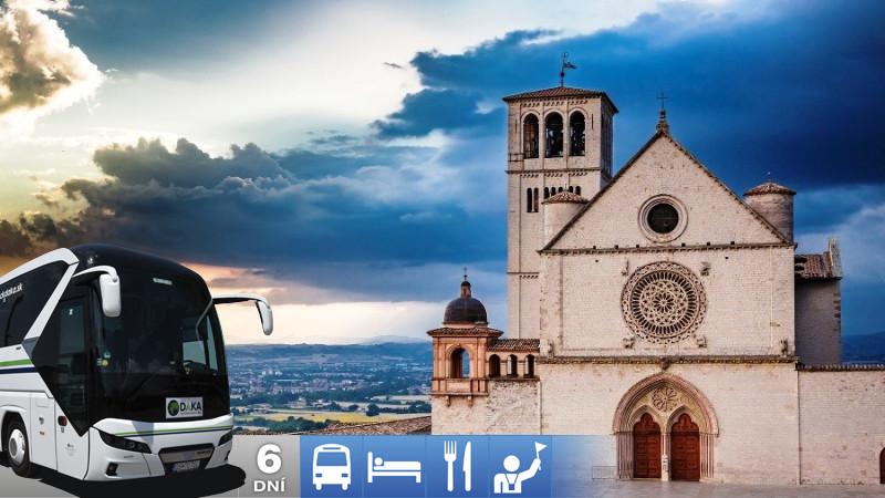 Ráno nás čakajú raňajky a nezabudnuteľná prehliadka Assisi. Navštívime majestátnu Baziliku sv. Františka, v ktorej sa nachádzajú jeho hrob a nádherné fresky. Prejdeme sa katedrálou sv. Rufina, kde bol krstený, a navštívime Baziliku sv. Kláry, v ktorej spočíva jej hrob a ikonický kríž, ktorý zasiahol srdce sv. Františka slovami: „Choď a oprav môj dom.“ Naše putovanie zakončíme pri Bazilike Santa Maria degli Angeli, mieste modlitby, kde sv. František ukončil svoju životnú púť. Vo večerných hodinách sa vydáme na cestu späť na Slovensko.