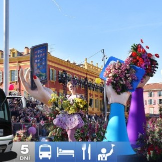Príchod do NICE v skorých ranných hodinách – prehliadka starého mesta s viacerými katedrálami, palácmi a úzkymi uličkami, ktorými sa dostaneme aj na kvetinový a provensálsky trh – individuálne voľno. Neskôr sa zúčastníme slávneho karnevalu v Nice, kde budeme mať možnosť obdivovať známy sprievod s alegorickými vozmi na tématiku morí a oceánov a budeme svedkami voľby kráľa a kráľovnej festivalu. Vo večerných hodinách odchod na ubytovanie.