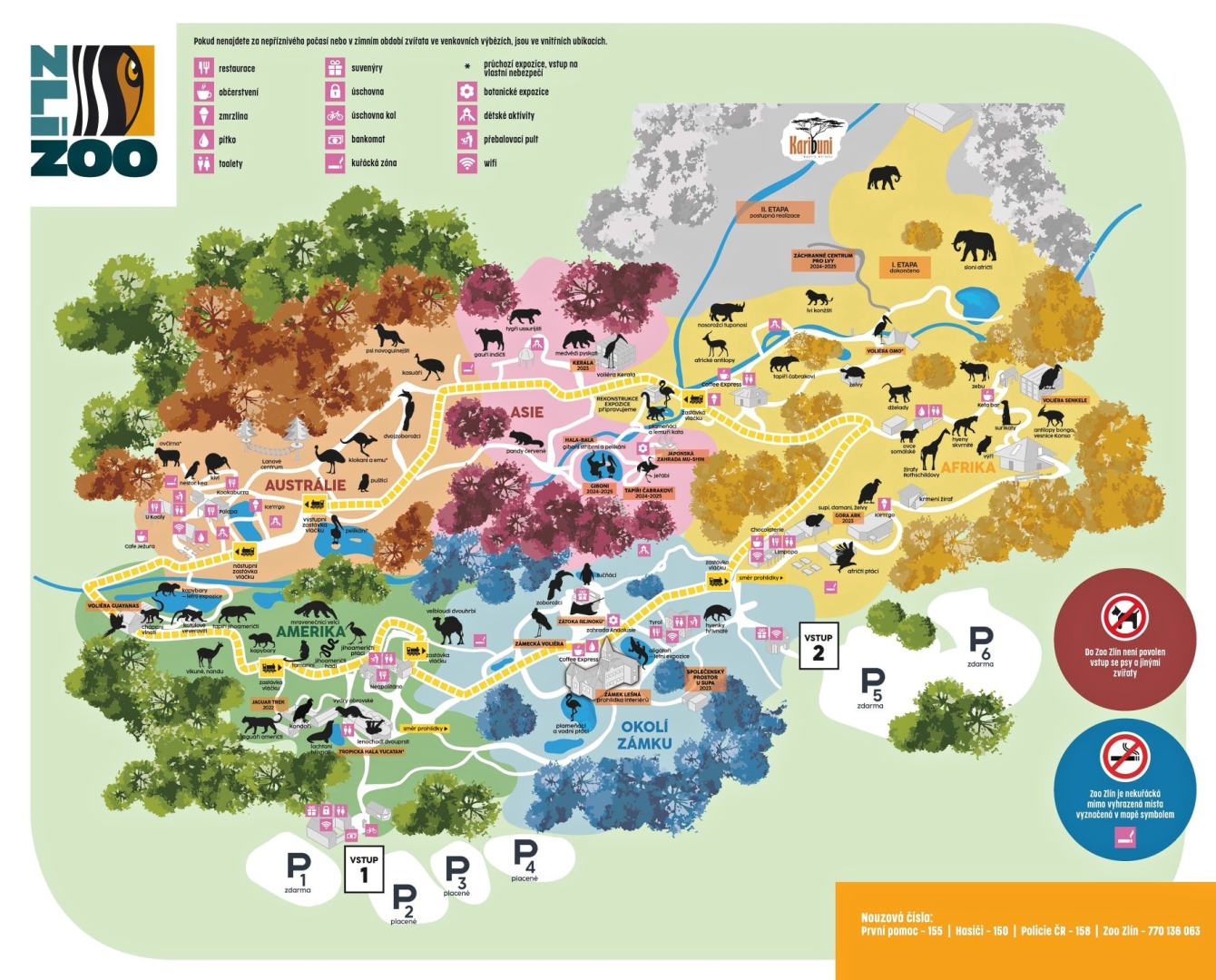 ZOO Zlín, tiež známa ako ZOO kontinentov je jednou z najviac navštevovaných ZOO v Českej republike. Je známa ako ZOO kontinentov podľa jedinečného tématického delenia záhrady, takže na jednom mieste môžete navštíviť takmer celý svet. Uvidíte faunu Afriky, Ázie, Austrálie a aj Ameriky, pričom je každá časť expozície prispôsobená prirodzenému prostrediu zvierat. Uvidíte raje v Zátoke rají, supy a iné vtáky v najväčšej voliére v Česku - Gora Ark, tropickú halu Yuacatán s tropickou faunou aj flórou. Samozrejme nemôžu chýbať slony, levy a tigre, nosorožce, žirafy a mnoho ďalších cicavcov. Na svoje si prídu aj obdivovatelia vtáctva, ktorí sa môžu tešiť na Ary, supy, plameniaky a dokonca aj na tučniaky. Tých, čo majú radi obojživelníky a ryby, poteší prítomnosť korytnačiek a aligátorov. Celý zoznam živočícho sa sem nevôjde, predsa len, je to ZOO svetadielov.