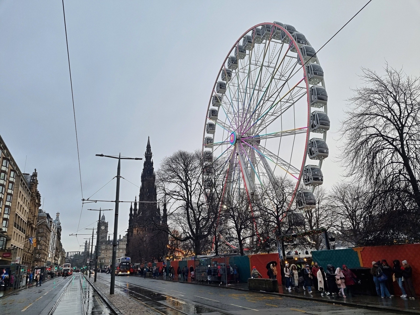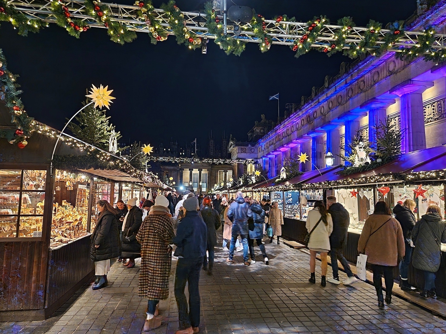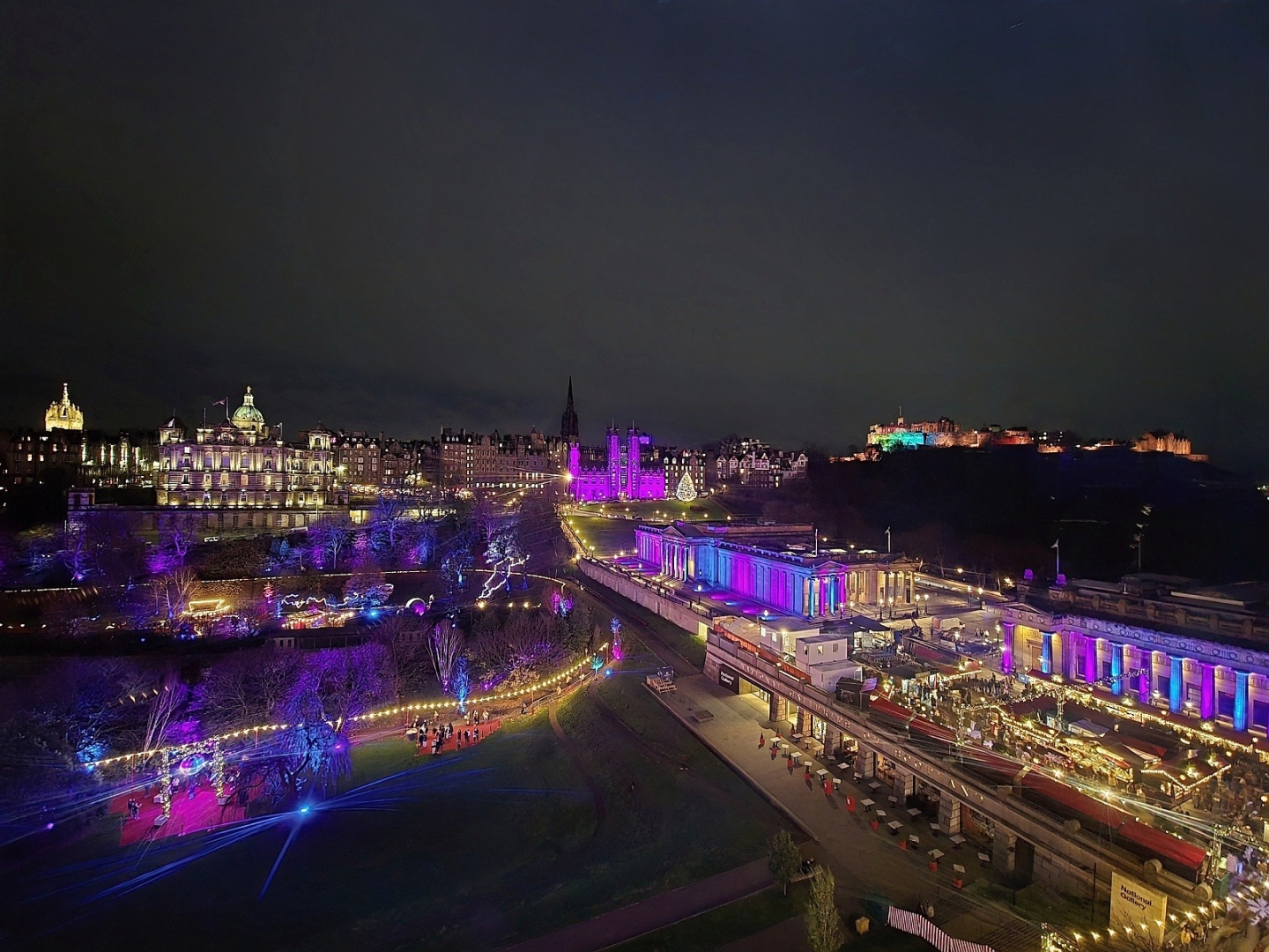Dopoludnia začneme v New Town – Novom Meste, ktoré si pre sebe nechala postaviť na prelomu 18. a 19. storočia edinburghská „smotánka“ ako ukážkové moderné mesto plné architektonických skvostov, vedla vtedy značně zastaralého a preľudneného Old Townu – Starého Mesta. Vďaka tomu vás pohltí pre Britániu typická vianočná georgiánsko-viktoriánská atmosféra najvyšších společenských vrstiev. Neďaleká hlavná ulica Nového Mesta, Princes Street a Princes Street Gardens poskytujú nádherné výhľady na Edinburgh Castle aj značnú časť Starého Mesta. V týchto miestach tiež navštívite vianočné trhy plné rôznych atrakcií pre deti aj dospelých. Môžete se napríklad povoziť na Big Wheel, ktorý vás v krytých kabínkach vyvezie až nad strechy domov, a to i nad najväčší (a najvyšší) pamätník, ktorý bol kedy postavený spisovateľovi. Naskytnú se vám tak úchvatné výhľady na tento UNESCOm chránený klenot severu, záliv Firth of Forth, kráľovstvo Fife a aj široké okolie. Návštěva Edinburghu by nebola kompletná bez návštevy Starého Mesta, kam se vydáte do škótského sídla kráľovskej rodiny – Holyroodského paláca (Palace of Holyroodhouse), ktorý je každoročne na Vianoce „kráľovsky“ vyzdobený.Následuje prechádzka po údajne najkrajšej ulici na svete – Kráľovskej míli (Royal Mile), která je preslávená svojimi historickými budovami, množstvom múzeí, malebnými zákutiami a vedľajšími uličkami. Na hornom konci Kráľovskej míle budete mať na výber voľiteľnú návštevu nejpopulárnejšej atrakcie v celej Británii – Edinburgh Castle, alebo The Scotch Whisky Experience, atrakce venujúcej sa „vode života“ – škótskej whisky, kde se o tomto národnom tekutom poklade zlatavej farby dozviete všetko od A do Z. Podľa záujmu a časových možností môžeme navštíviť loď Britannia. Večerná prechádzka vianočne osvetleným mestom je potom už len čerešničkou na torte, aby ste sa úplne ponorili do vianočnej atmosféry takmer rozprávkového mesta.