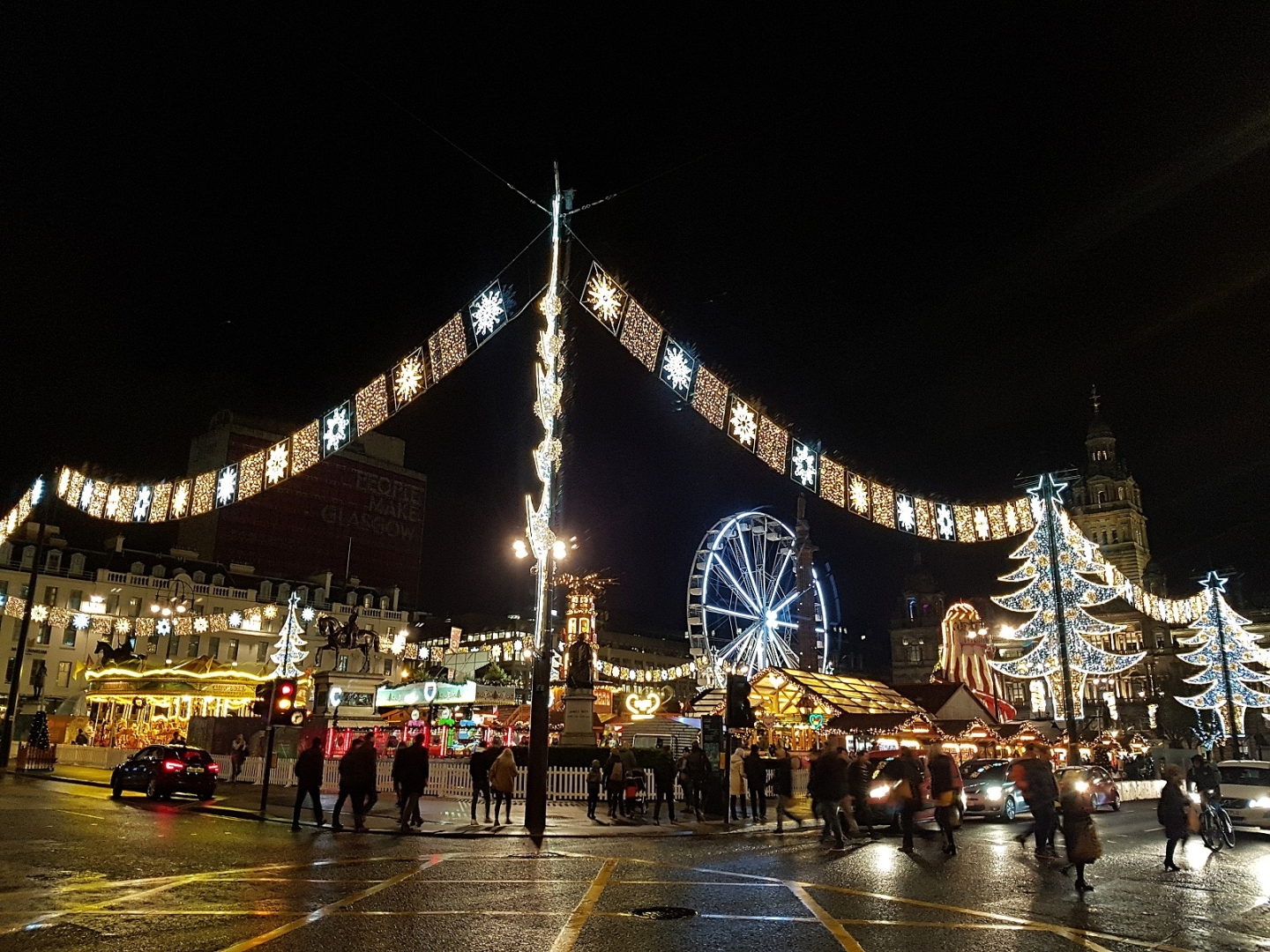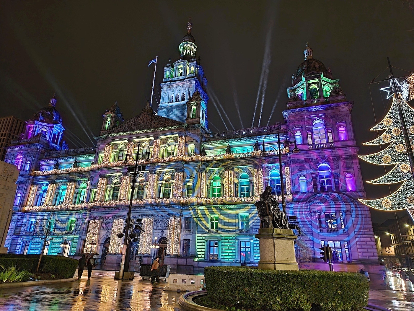 Do najväčšieho a najpriateľskejšieho škótskeho mesta, Glasgowa, sa po raňajkách vydáme spoločne vlakem. Glasgow sa samozrejme nemôže nechať vianočnou výzdobou, mnohými trhmi ani zábavnými atrakciami pred Edinburghom zahanbit, a tak aj tu na vás bude vianočná atmosféra dýchať naprieč celým stredom mesta. Okrem hlavných a najznámejších ulíc, námestí a nákupných zón, kam sa za zábavou a nákupmi zbiehajú obyvatelia zo širokého okolia, dokonca i z Edinburghu, je samozrejmosťou prehliadka najväčšieho a najživšieho námestia George Square, Glasgowskej katedrály svätého Munga a najstaršieho domu v Glasgowe. Tu je možná prehliadka múzea religionistiky alebo výšlap nad katedrálu do tajomného Necropolis. Odtiaľ sa vydáte okolo škótského najslávnejšieho pivovaru k rieke Clyde, plnej rozmanitých mostov, a popri rieke späť do centra mesta a do Merchant City – mestskej časti vybudovanej najbohatšími podnikateľmi a obchodníkmi minulých storočí. Po zotmení se tiež v Glasgowe atmosféra Vianoc výrazne znásobí, čomu isto dopomôže, pokiaľ ochutnáte tradičnú špecialitu na zahriatie – hot toddy, varené víno či cider alebo vianočný punč. V neskorších hodinách sa večer vlakom vydáte späť do Edinburghu.