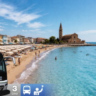 Ráno príchod do obľúbeného letoviska Caorle. Deň začnete príjemnou prechádzkou historickým centrom, ktoré patrí k najkrajším na severnom pobreží Jadranu. Úzke uličky, farebné domčeky a pokojná atmosféra pri mori vytvárajú ideálne miesto na rannú kávu alebo prvé nasatie talianskeho leta. Zvyšok dňa patrí oddychu pri mori. Presuniete sa na širokú pieskovú pláž Spiaggia di Levante, ktorá je známa pozvoľným vstupom do mora a príjemným zázemím. Či už si zvolíte ležadlo, alebo si rozložíte uterák na piesku, čaká vás pohodový deň bez stresu. Počas dňa si môžete užiť kúpanie, prechádzky po promenáde, zastaviť sa na gelato alebo si dopriať obed v miestnej reštaurácii s výhľadom na more. Caorle má presne ten typ atmosféry, kde čas plynie pomalšie a všetko dáva zmysel. V podvečerných hodinách odchod z Caorle a návrat smerom na Slovensko.
