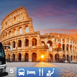 V ranných hodinách príchod do Ríma, prehliadka Circo Massimo, miesto, kde sa nachádzal kedysi obrovský hipodrom. Rimania milovali súťaženie v pretekoch na vozoch. Uvidíte Konštantínov oblúk, navštívite Koloseum, symbol Ríma, ktoré prežilo stáročia. Odohrávali sa tam gladiátorské zápasy, navštívite Palatín a Rímske fórum, kde sa nachádza napríklad chrám Vestáliek, ktoré chránili večný oheň a práve podľa legendy jedna z nich bola Rhea Sylvia, ktorej sa narodili dvaja bratia Romulus a Rémus a práve oni založili mesto Rím. Uvidíte Cisárske fóra, kde sa nachádza obrovská Trajánová tržnica, prejdeme cez Benátske námestie s palácmi, z ktorých sa prihováral ľudu Mussolini, odfotíte si pomník Viktora Emanuela II., ktorý bol prvým kráľom zjednoteného Talianska. Navštívime spoločne Kapitol, kde sa nachádza socha vlčice, ktorá vychovala Romula a Réma a práve vlk je národným symbolom Talianska. Prejdeme okolo divadla Marcello a to či hovoríte pravdu uvidíme v Bocca della Veritá, v ústach pravdy s návštevou kostola Santa Maria in Cosmedin, kde sa nachádzajú pozostatky Sv. Valentína, patróna zamilovaných. Prejdeme cez ostrov do štvrti Trastavere, kde budete mať čas na vynikajúcu zmrzlinu alebo návštevu kostola Santa Maria di Trastavere.