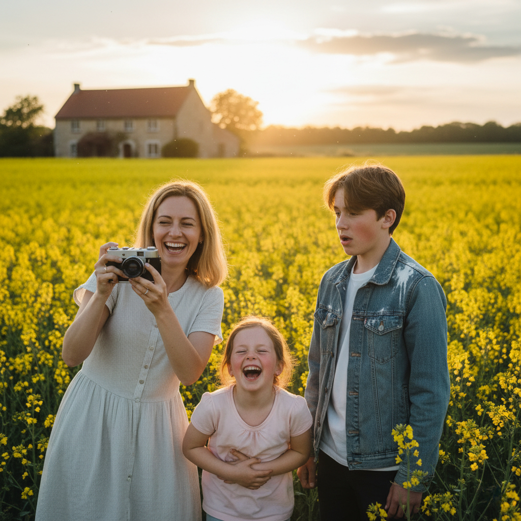 Veľmi rada fotím, ale som len amatér. Za domom nám vykvitlo krásne žlté repkové pole a mňa to tam už ťahalo. Syn je už v pubertálnom veku, čiže jeho fotiť neprichádza do úvahy. Nanajvýš sa dá ukecať na fotku, ale len zozadu. Dcérka je ešte vo veku, keď ju to baví. Syna som nahovorila, nech ide s nami aspoň ako môj asistent.