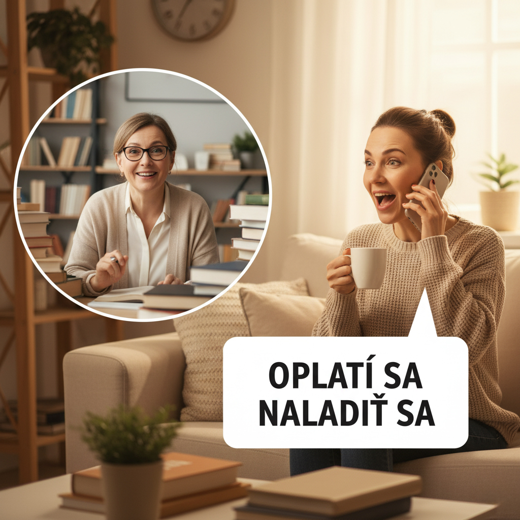 Rozhodla som sa asi prvýkrát zapojiť do súťaže s Rádiom Expres, kde po zdvihnutí telefónu bolo treba do 10 sekúnd povedať heslo: „Oplatí sa naladiť sa.“ Sedím si tak v obývačke, pijem kávu, a zrazu zvoní telefón. Číslo nepoznám. Zodvihnem a zrozumiteľne poviem: „Oplatí sa naladiť sa.“ Na druhej strane ticho. A potom sa nesmelo ozve pani z vydavateľstva Macmillan, ktorá nám každoročne radí s knihami na angličtinu (som učiteľka). Bola však veľmi milá, povedala, že mi nechce pokaziť šancu na výhru, a že zavolá zajtra.